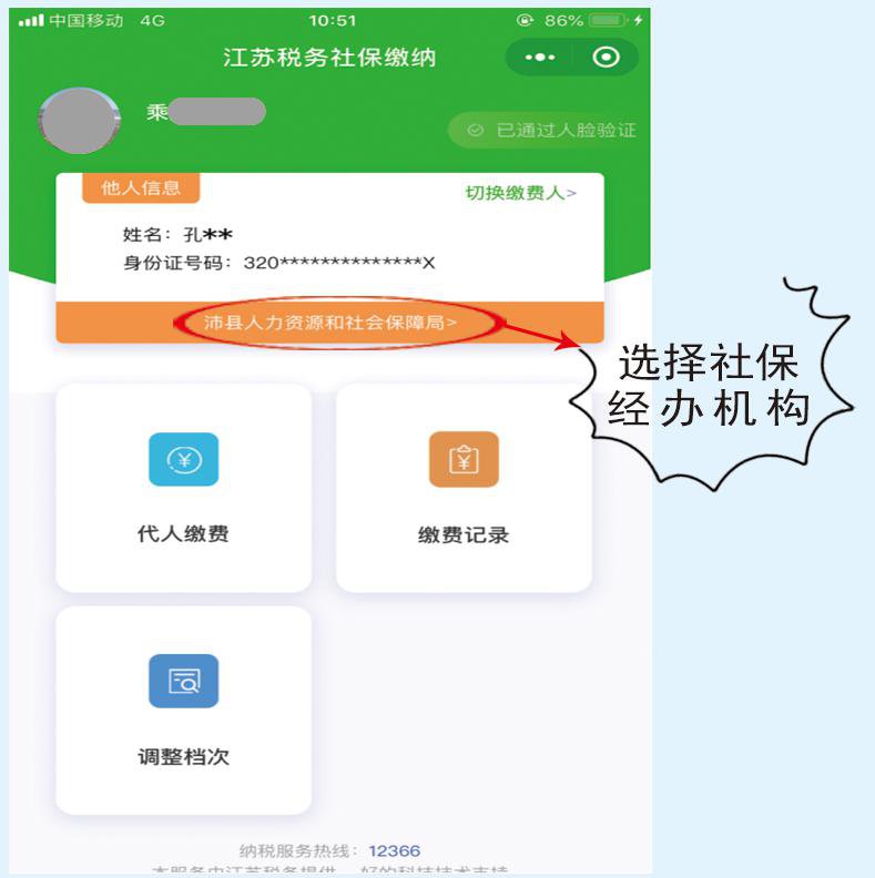 5.选择社保经办机构,沛县人力资源和社会保障局为城乡居民基本医疗保险费,沛县人力资源和社会保障局(城乡养老)为城乡居民养老保险费。在缴费的时候一定要选对险种和机构。