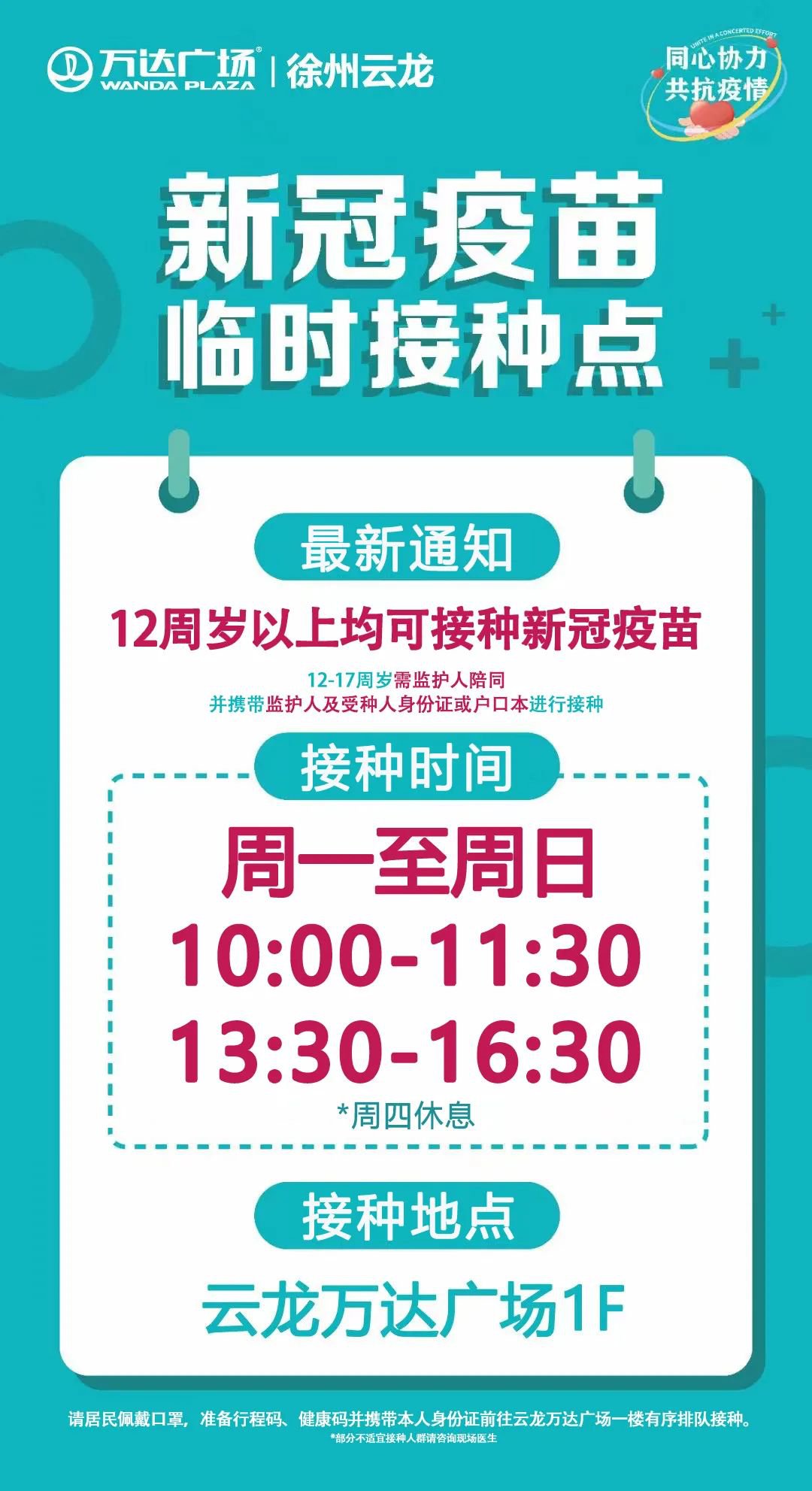最近疫情严峻,小伙伴们都接种疫苗了吗?没打的朋友们抓紧来云龙万达打疫苗呀。现在12-17岁的青少年也可以接种,逛街的同时就能搞定不用再顶着高温排队,简直太方便啦