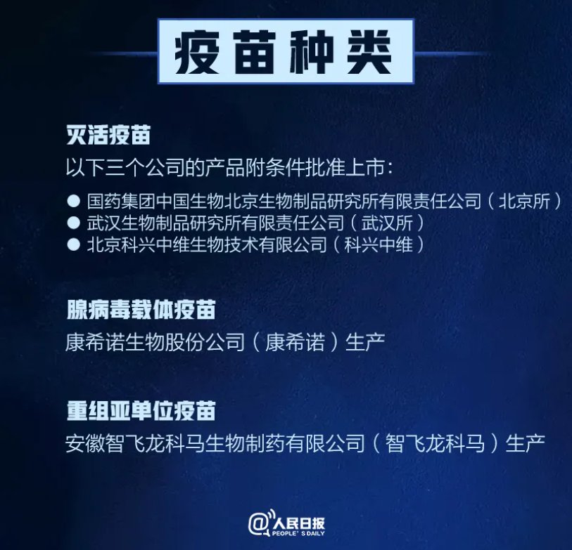 包括国药中生北京公司、国药中生武汉公司、北京科兴中维公司生产的3款灭活疫苗;