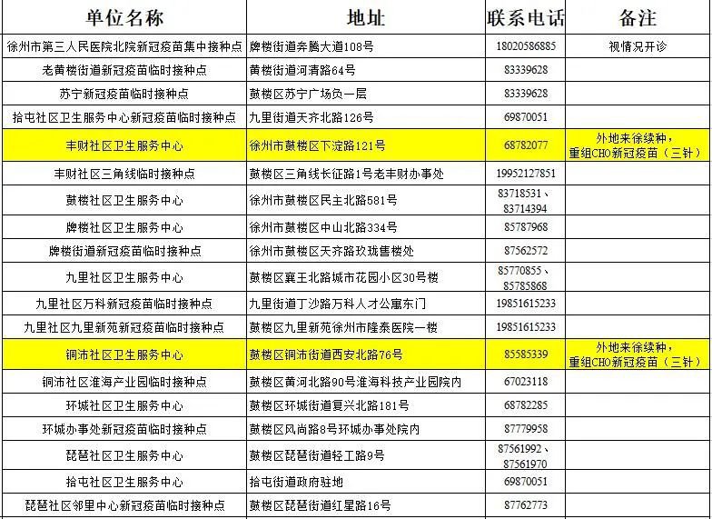 为满足仅在外地接种了第一或二剂次重组新冠病毒疫苗(CHO细胞)的人员来徐后完成全程接种,特紧急申请了一批CHO疫苗(数量有限),如有需要请到指定接种单位预约接种。