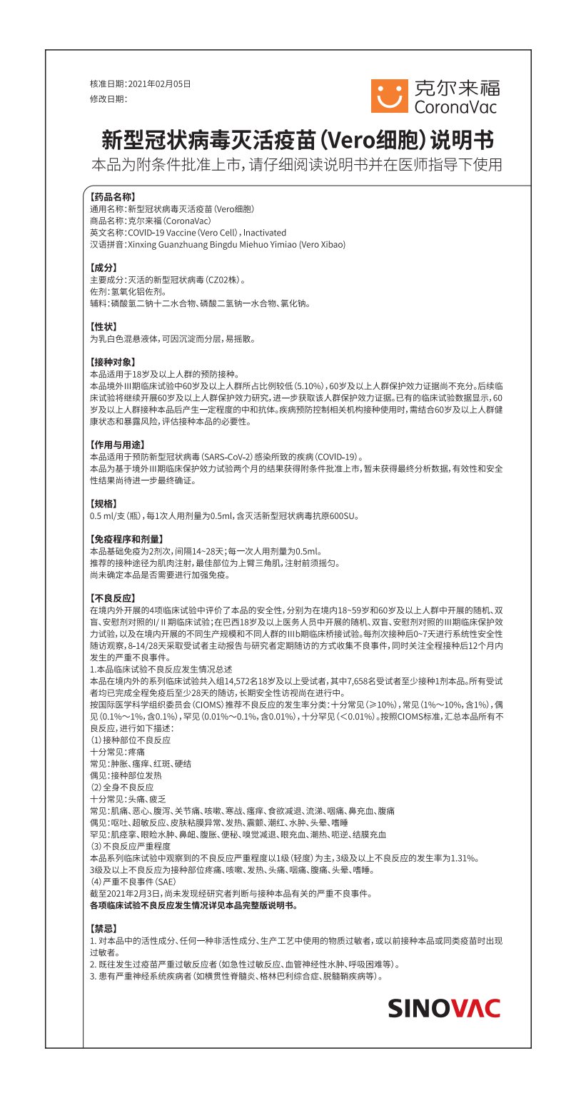 2021.04.03版 北京科兴中维生物技术有限公司新型冠状病毒灭活疫苗克尔来福®临床研究数据汇总