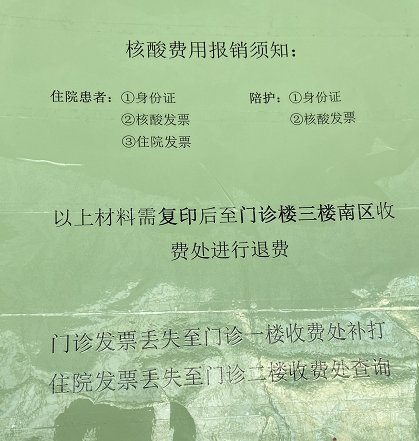 日前,徐州市中心医院也张贴了核酸检测报销的通知。通知明确:在徐州市中心医院(含新城区分院)住院做过核酸检测的住院患者,根据通知内容准备材料到徐州市中心医院进行退费(新四院住院的也在老院区退费)。