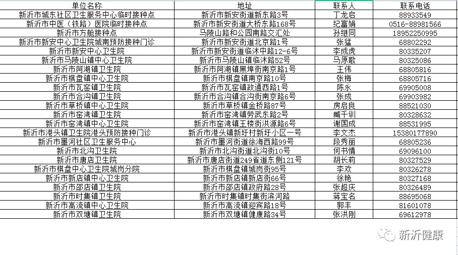 附件:新沂市新冠疫苗接种点一览表