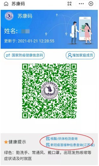 苏康码新冠疫苗接种信息电子凭证查询入口: