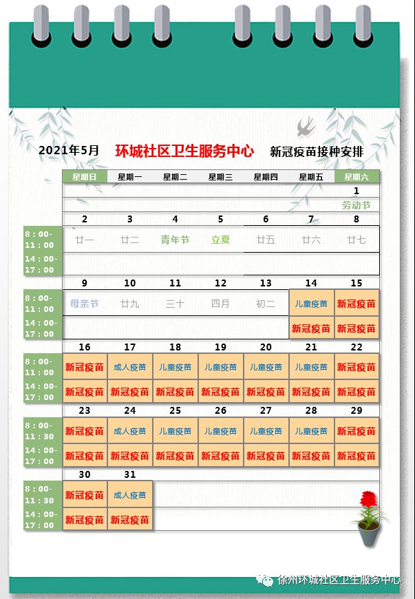 为进一步提高新冠疫苗接种效率,方便广大市民应种尽种,现对5月份新冠疫苗接种安排做出如下调整: