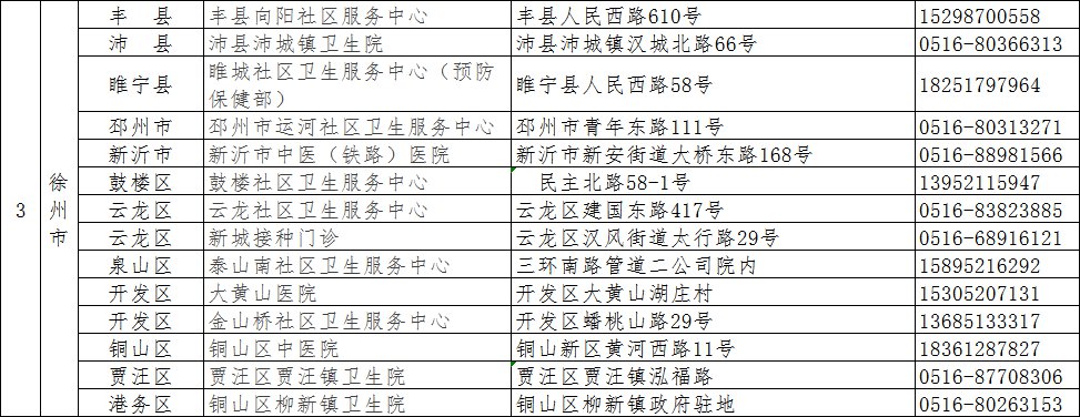 徐州外籍人士接种新冠疫苗单位信息一览表