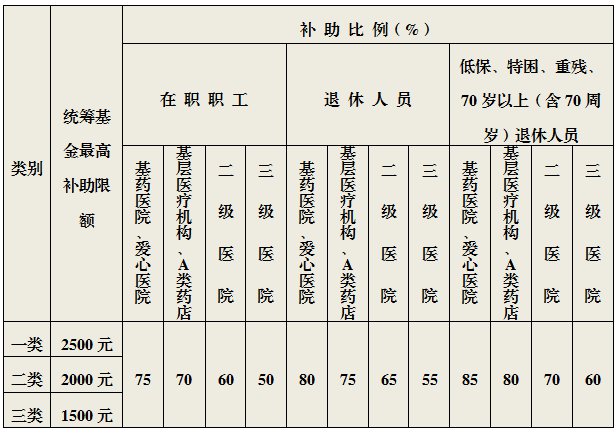 除普通门诊统筹基金支付范围外,符合治疗该种慢性病的乙类药品也纳入门诊慢性病基金支付范围。补助比例如下表: