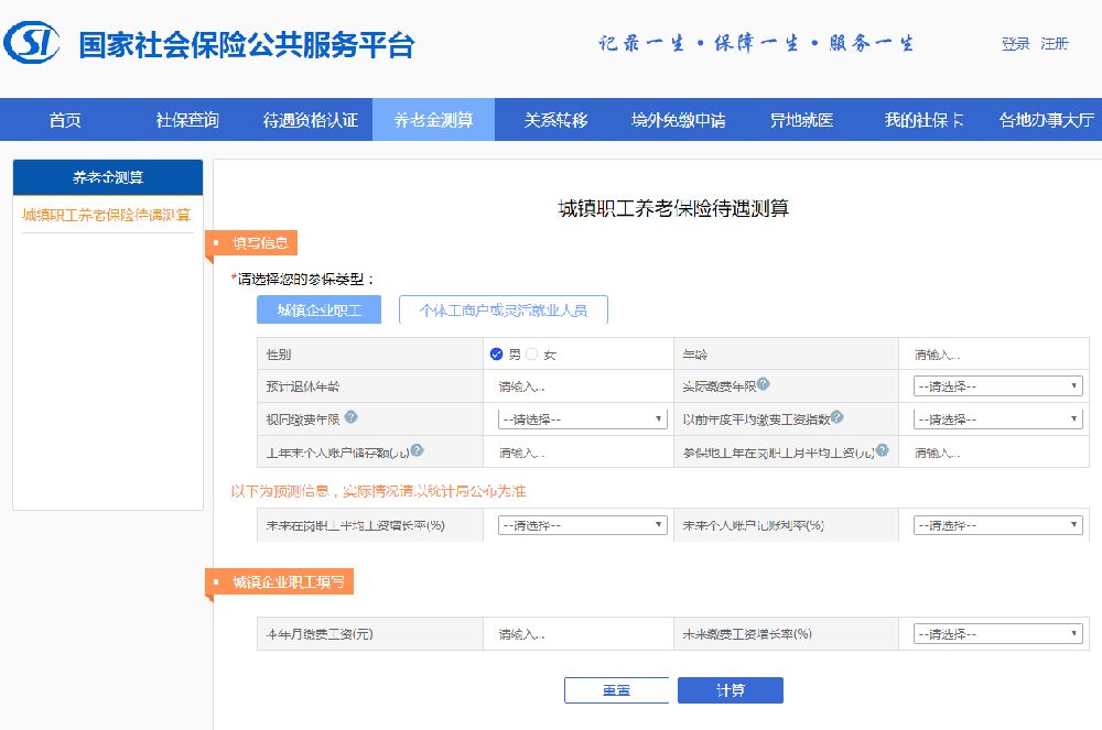 国家社保服务平台养老金测算入口 社保养老金计算器在线计算