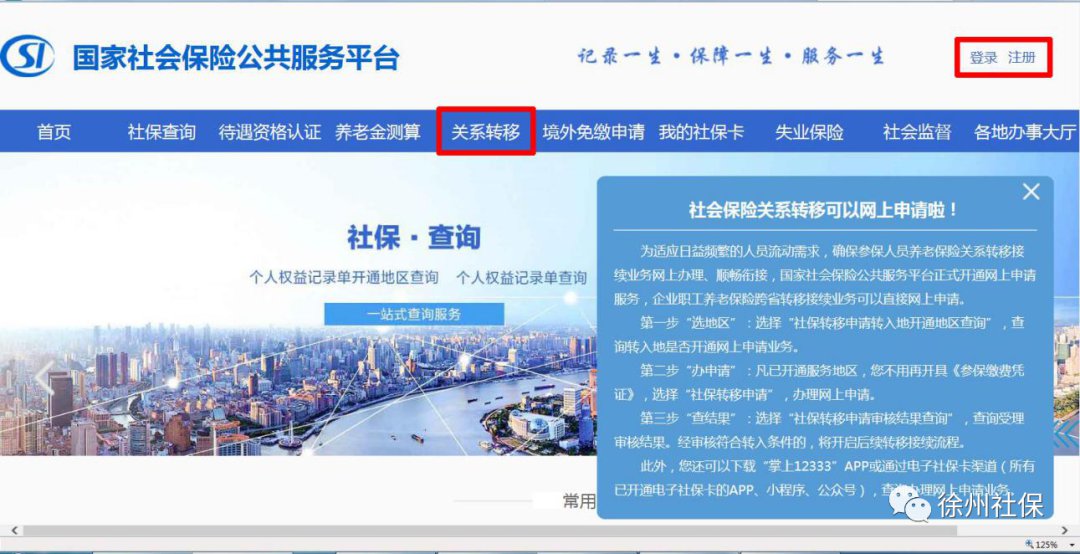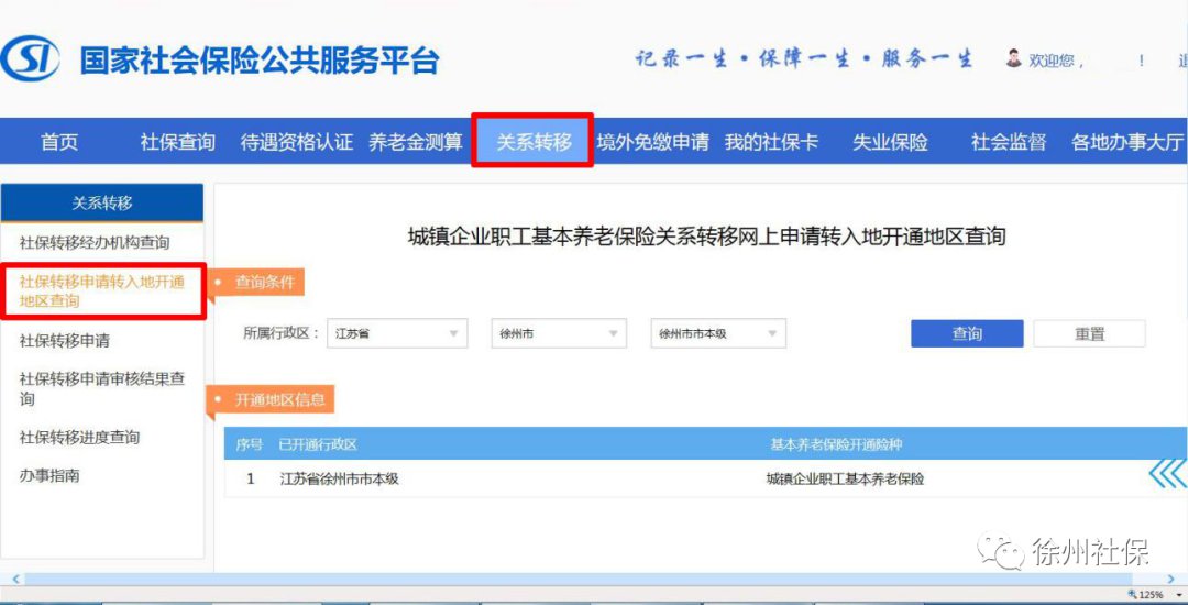徐州跨省转移养老保险国家社会保险公共服务平台申请流程