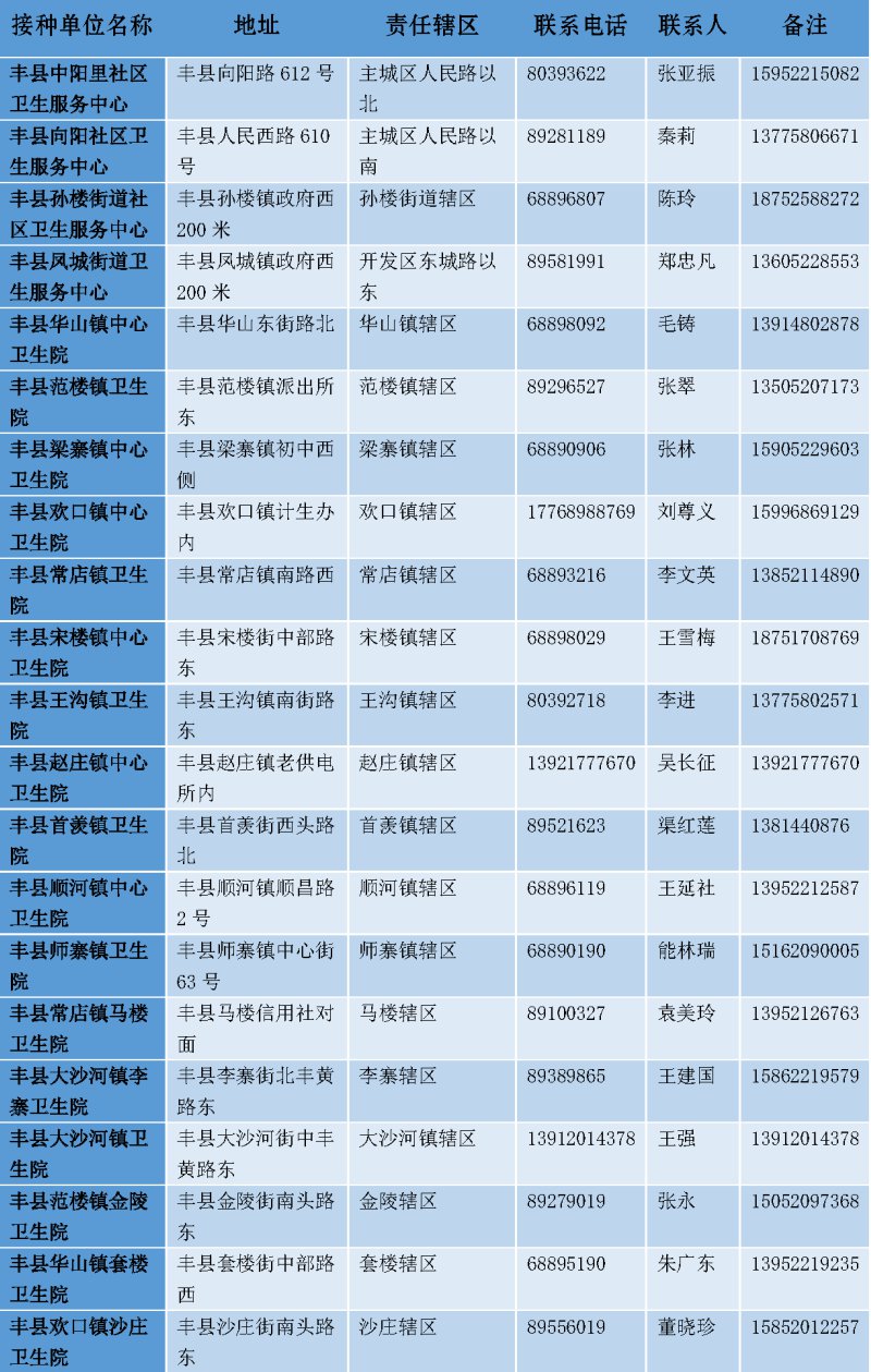 丰县新冠病毒疫苗接种点一览