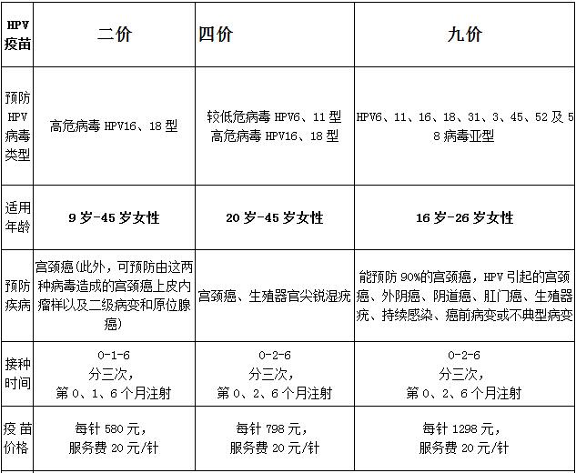 二价、四价、九价宫颈癌疫苗的区别 二价,四价,九价宫颈癌疫苗的区别图