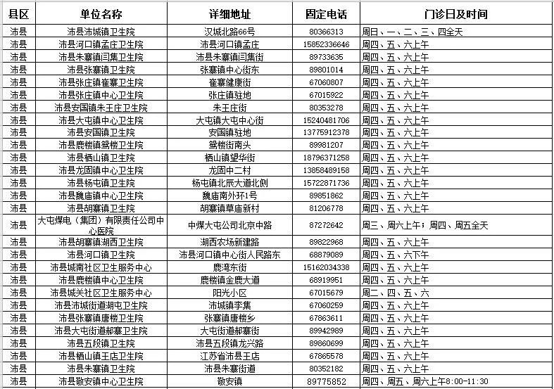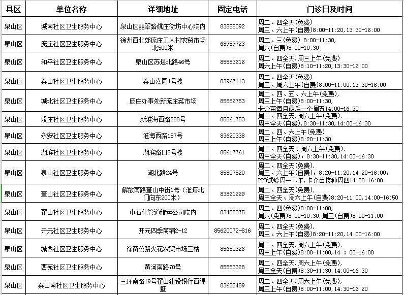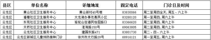 2020徐州市儿童预防接种单位汇总