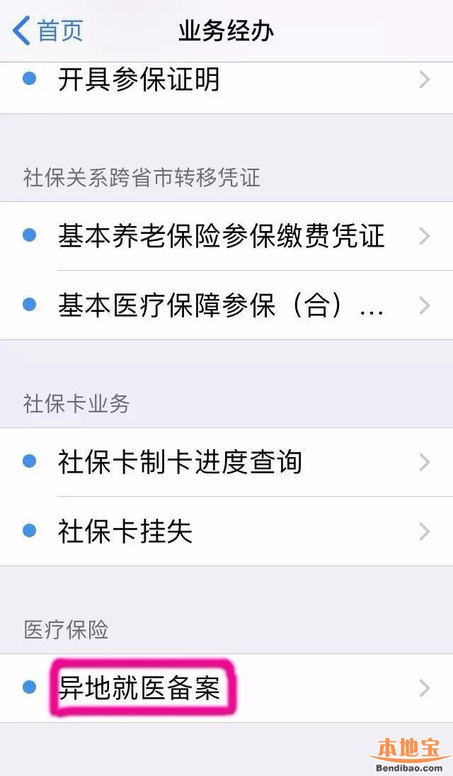 3、点击最下方的”异地就医备案“