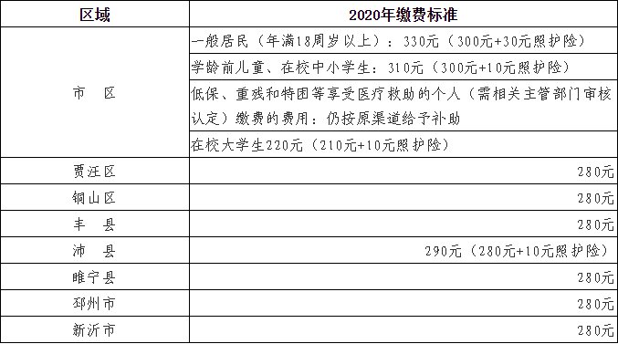 2020徐州关于城乡居民医疗保险费缴费相关事项的公告