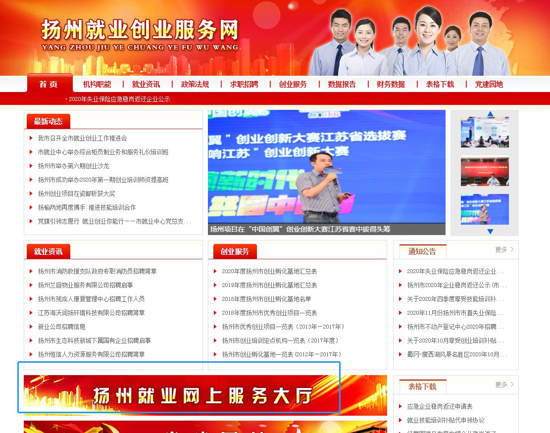 1、登录扬州就业创业服务网(点击进入)
