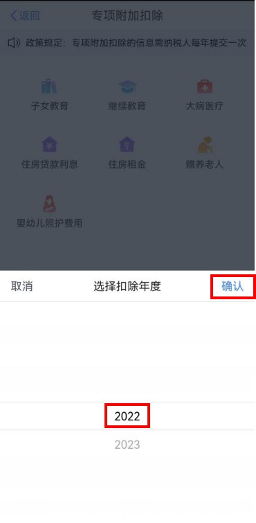 第二步:选择扣除年度