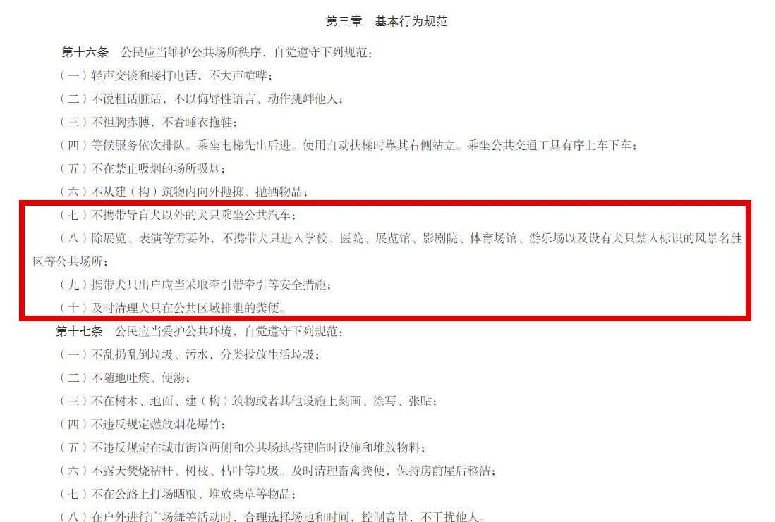 七、携犬人应当及时清理犬只在公共区域排泄的粪便。