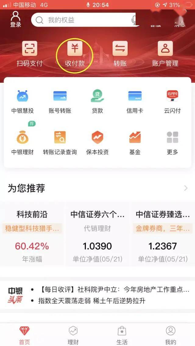 使用完消费券后,如需补付差额,可返回手机银行“首页”,点击“收付款”