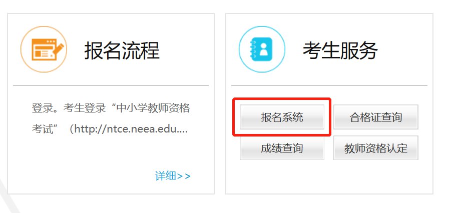 电脑进入http://ntce.neea.edu.cn/(中小学教师资格考试),点击页面右下角的“报名系统”。(考幼儿园、中职等学段的同学也是从这个网址进入报名 )