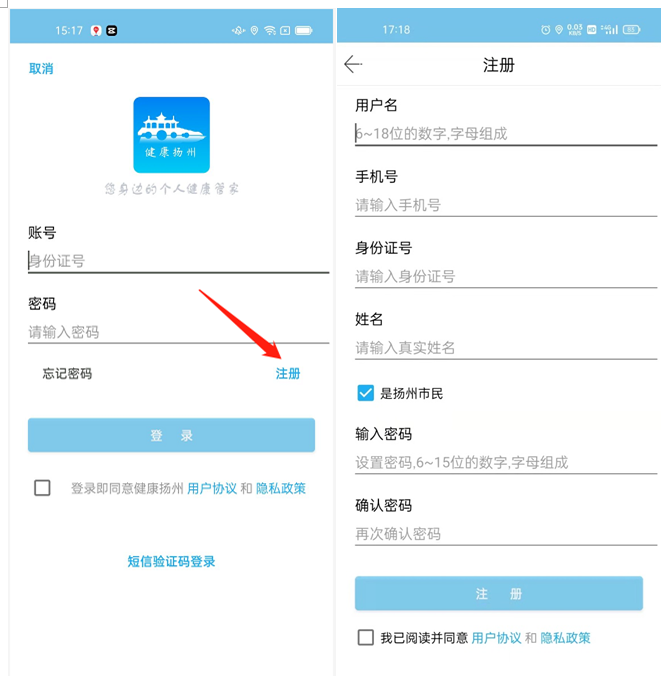 扫描二维码,下载“健康扬州APP”,并进行注册登录。