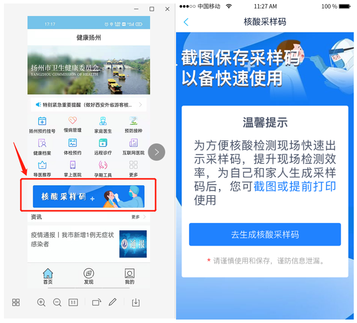 健康扬州APP核酸采样码申请指南 扬州核酸采集app