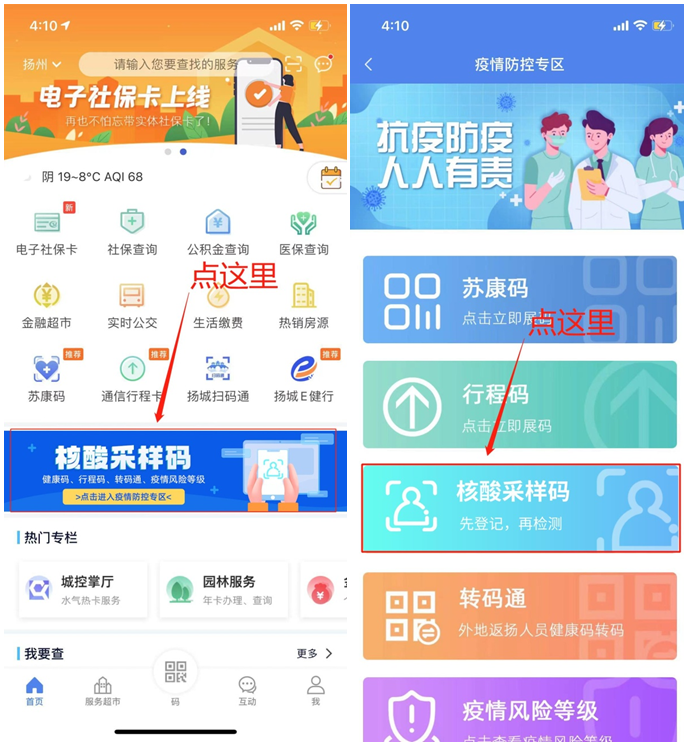 我的扬州APP怎么申请核酸采样码(扬州核酸采样登记)