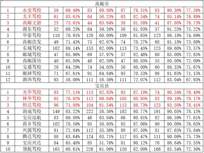 扬州市驾校培训质量综合合格率排名前五驾校分别是: