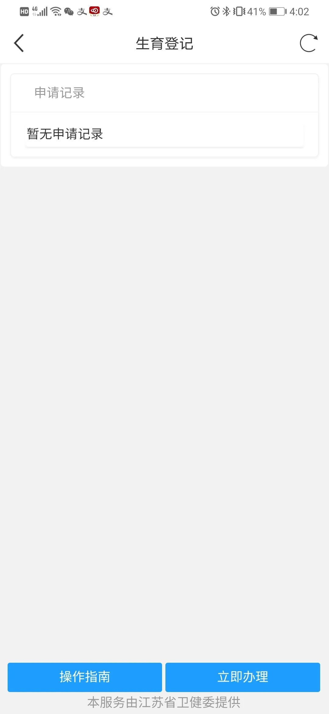 第三步:选择【生育登记】——点击【进入应用】——选择【立即办理】