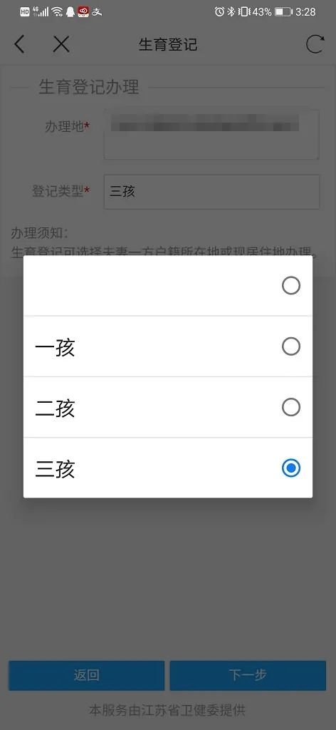 第四步:选择办理生育登记的孩次