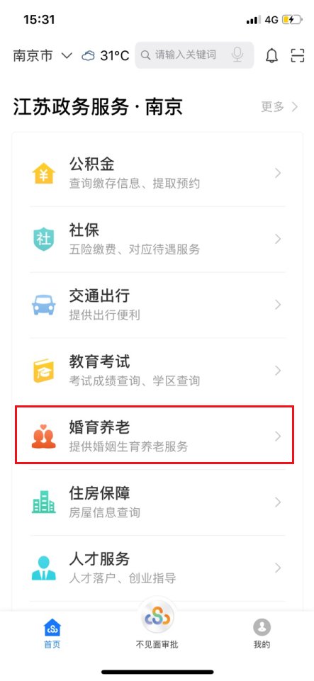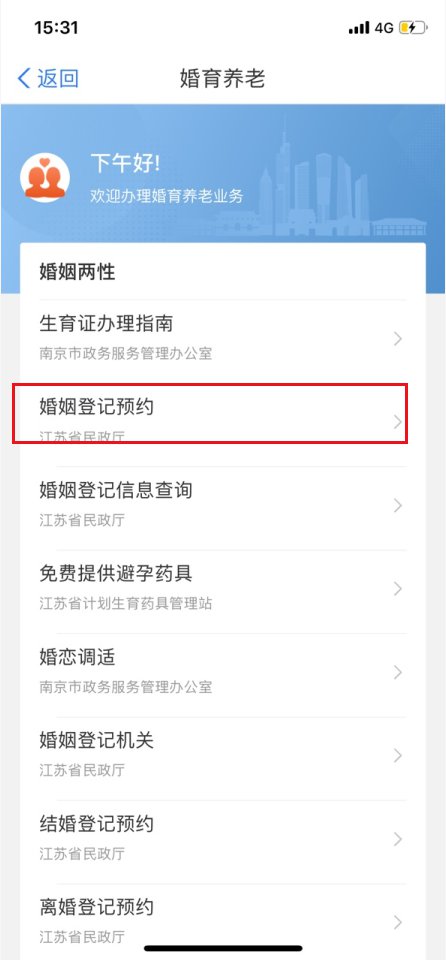 点击“婚育养老”专栏,选择婚姻登记预约↓