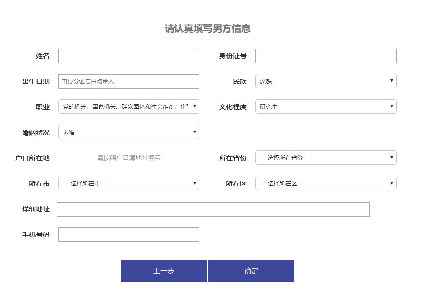 6、根据页面提示准确填写男女双方信息,确认后点击确定。