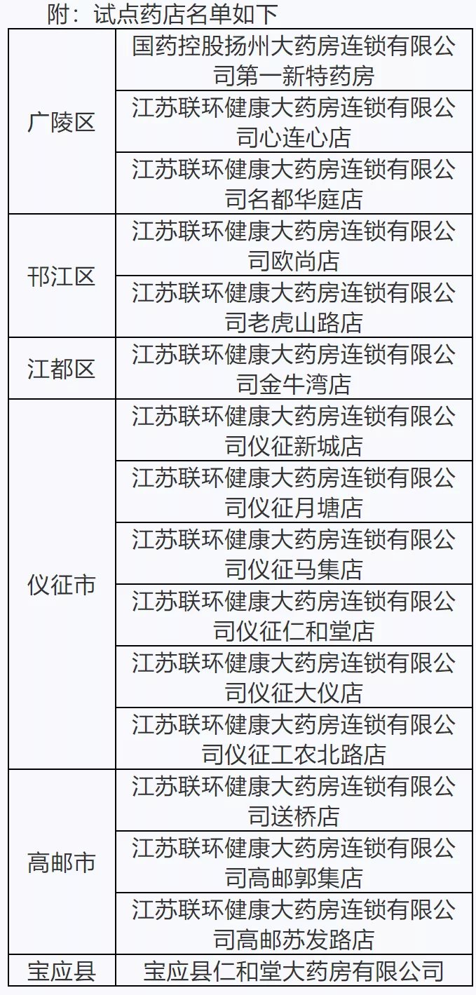 扬州哪些零售药店异地就医可以直接结算