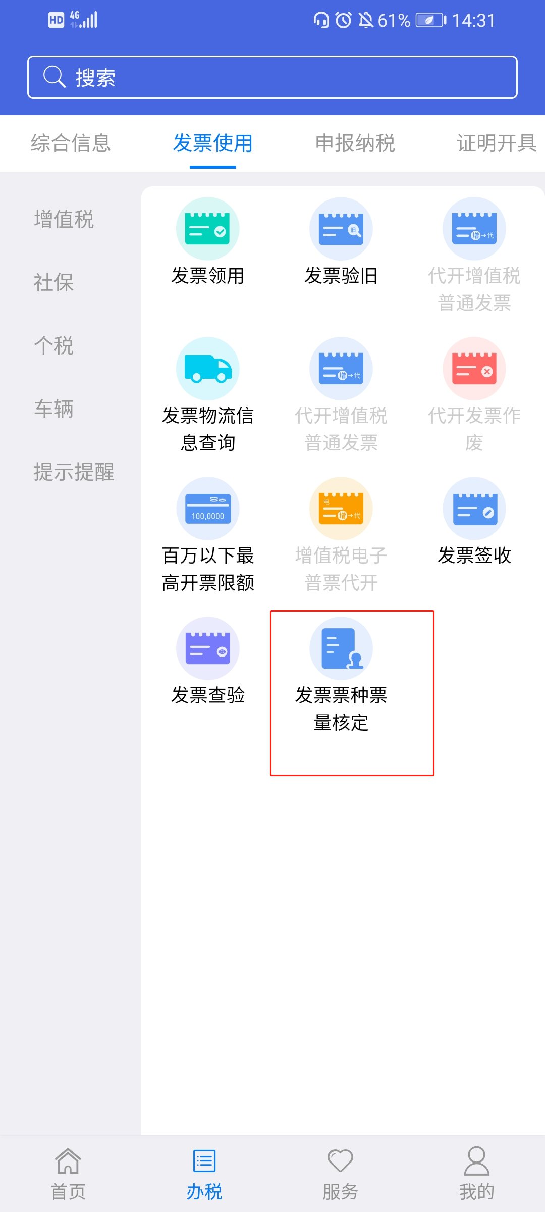1、在办税页面的“发票使用”或“增值税”菜单下均能找到,也可直接使用搜索栏搜索该功能,找到该功能后点击进入。