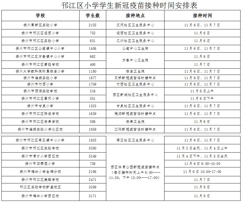扬州邗江区小学新冠疫苗接种时间安排表