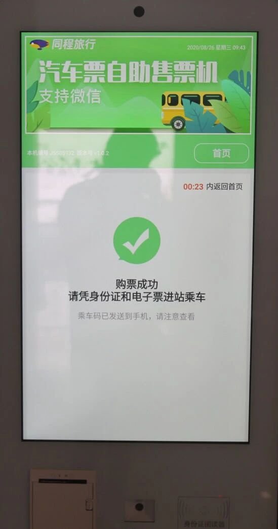 ⑤支付成功后凭身份证和电子票乘车
