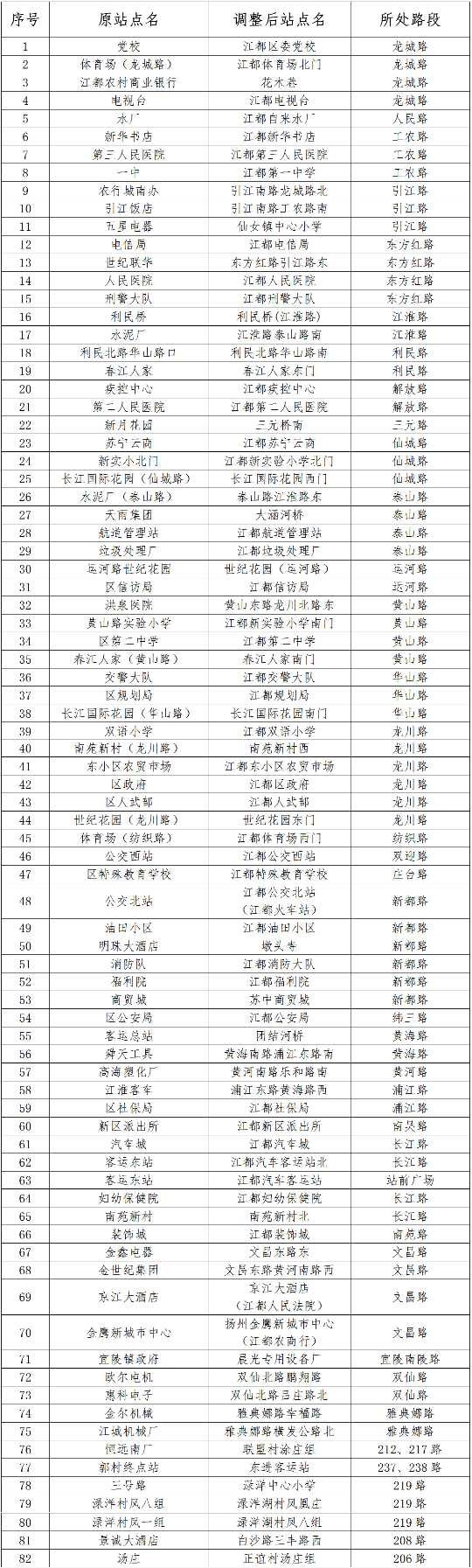 扬州江都区82组公交站名称调整情况 扬州江都208公交