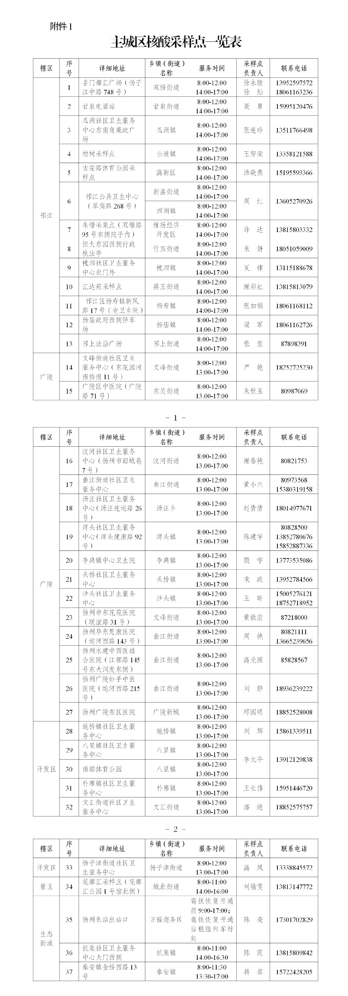 附件:1、主城区核酸采样点一览表