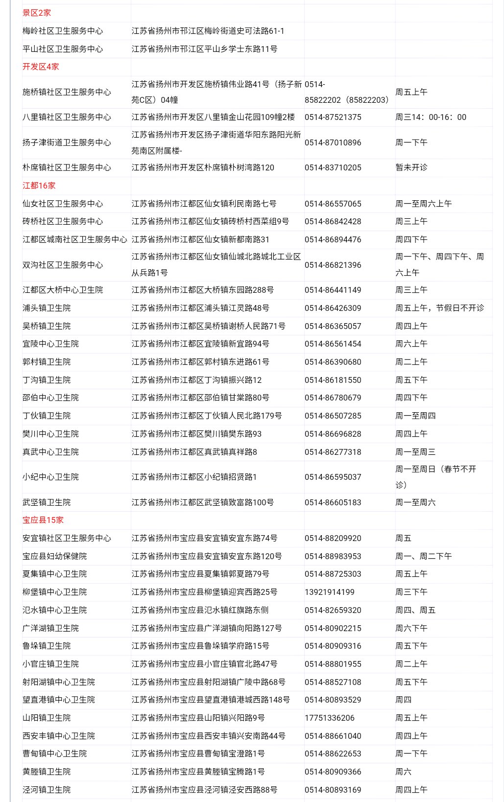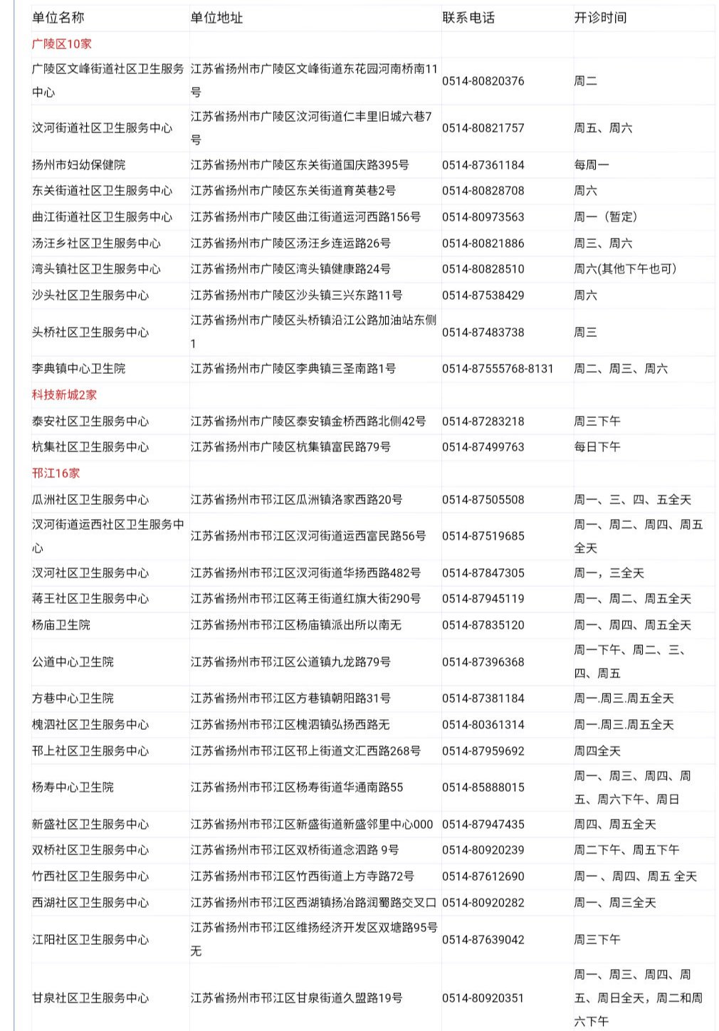 扬州流感疫苗接种点+预约电话: