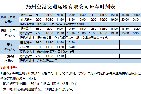 扬州机场航班时刻表(扬州机场航班时刻表2020)