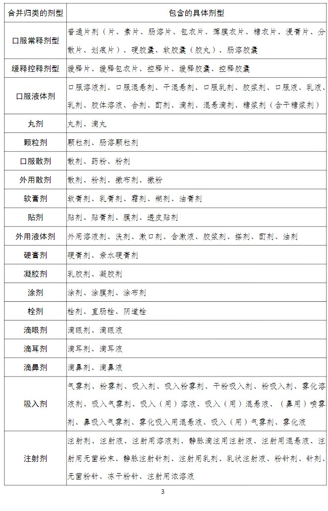 合并归类的剂型见下表:
