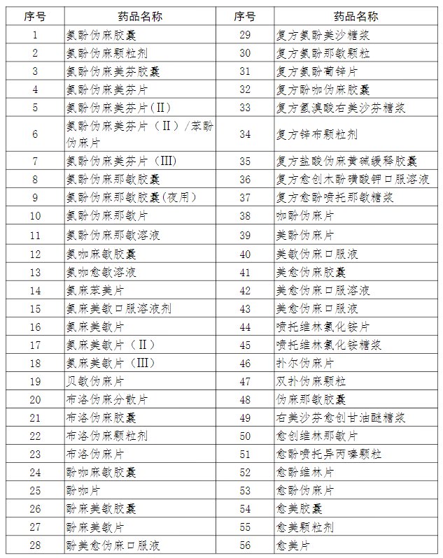 4.西药部分第1133号“缓解感冒症状的复方OTC制剂”包括的品种见下表: