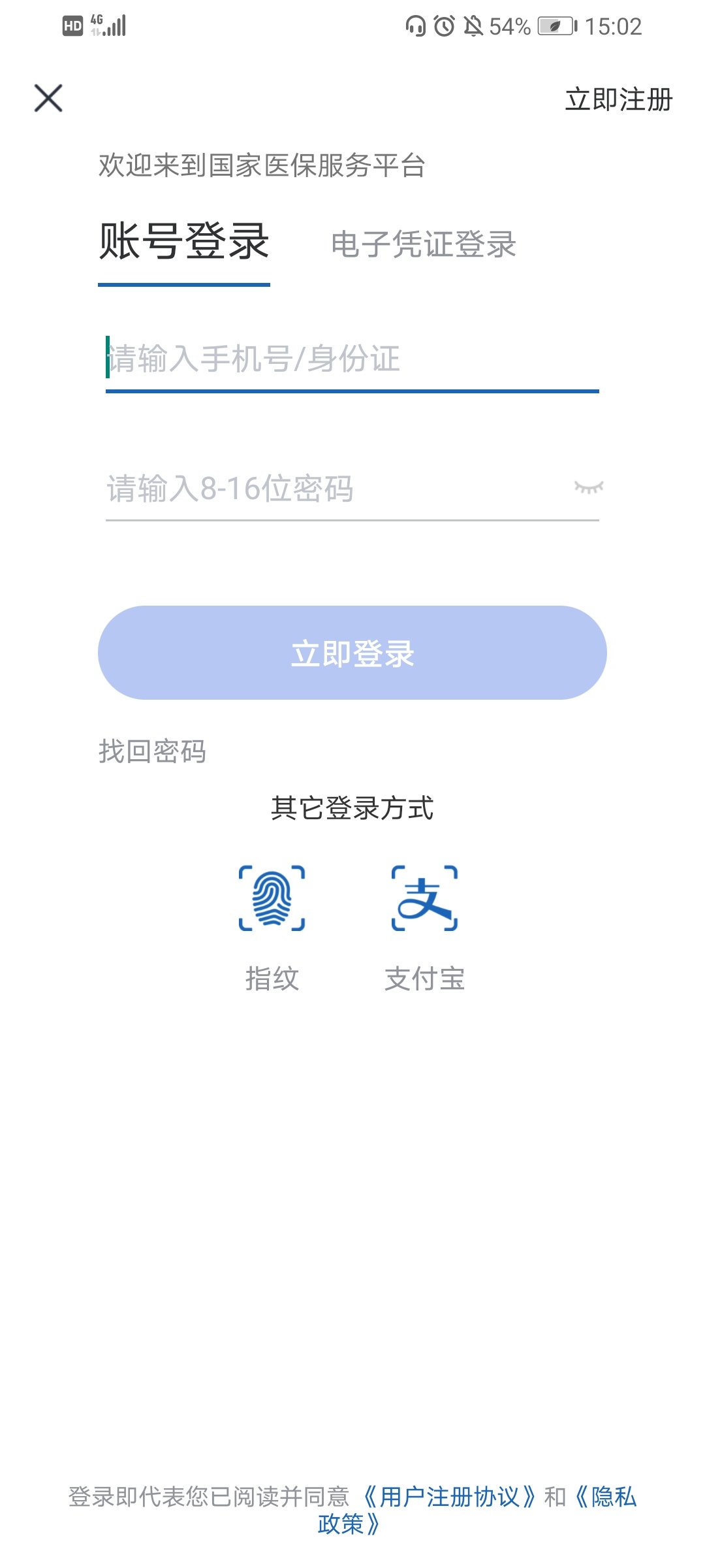 ①下载“国家医保服务平台”APP,进入登录页面