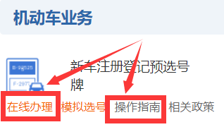 互联网注册用户在互联网登录后,点击【机动车业务】→【新车(含新能源汽车)注册登记预选号牌】下的【预选号牌】进入预选号牌流程。如下图所示。