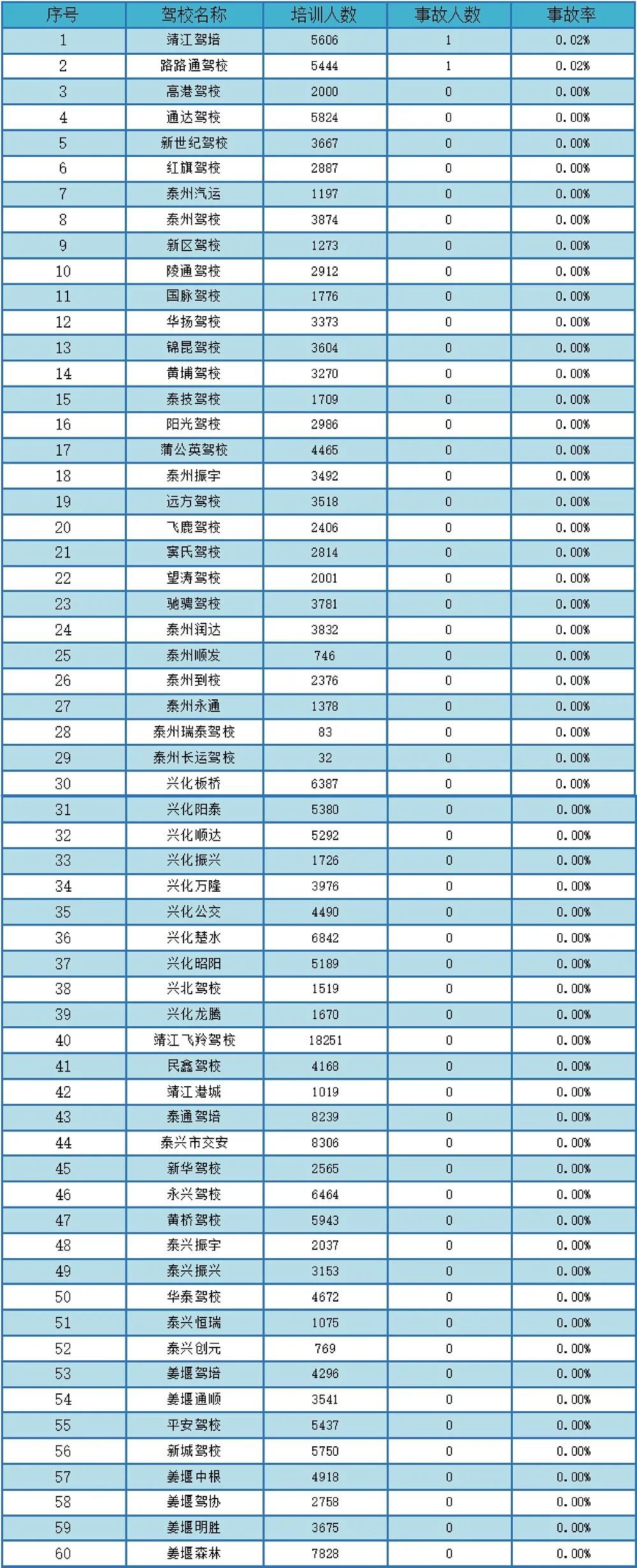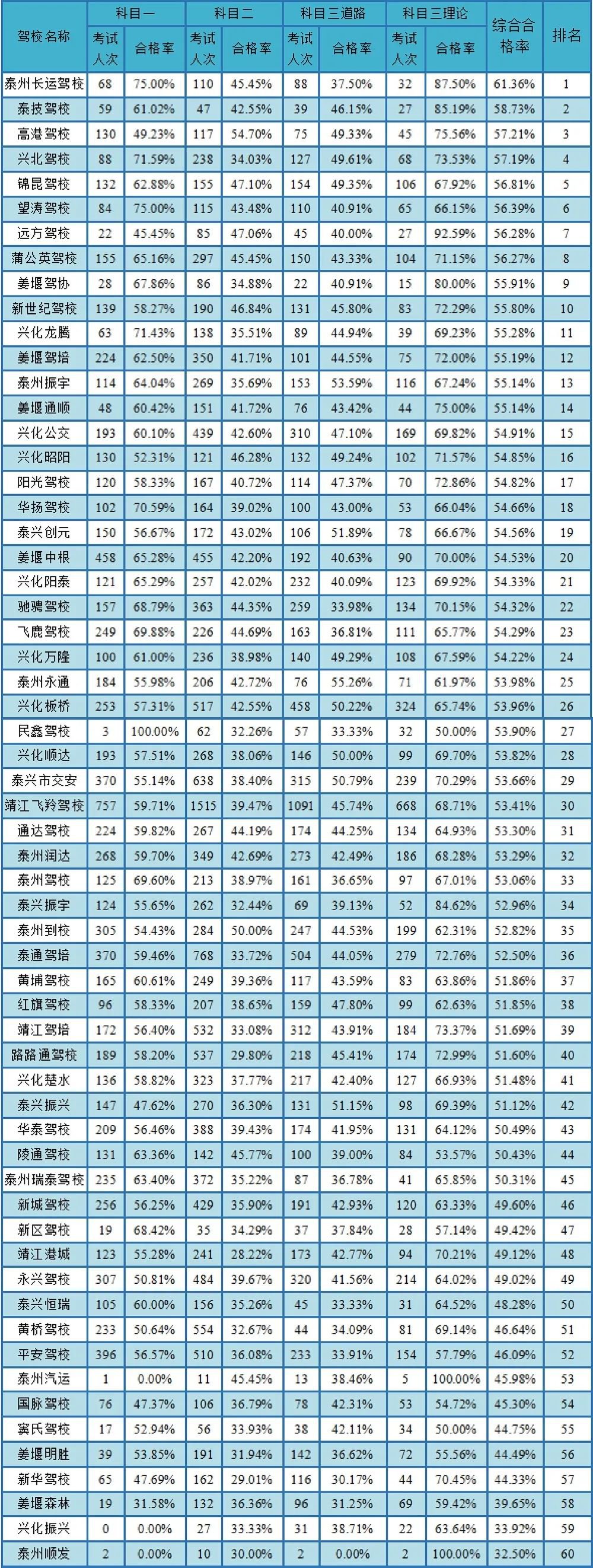 泰州市驾校考试质量排名通报
