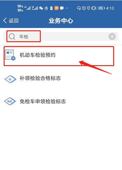 第二步:在搜索框输入“年检”,点击“机动车检验预约”进入预约页面: