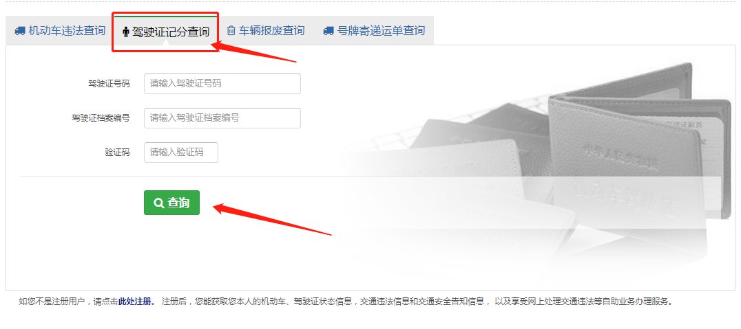第二步:点击『驾驶证记分查询』,输入驾驶证号码、驾驶证档案编号、验证码等信息,然后根据系统提示完成后面的申请流程
