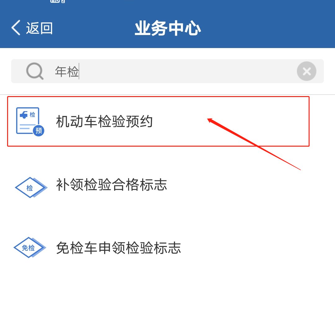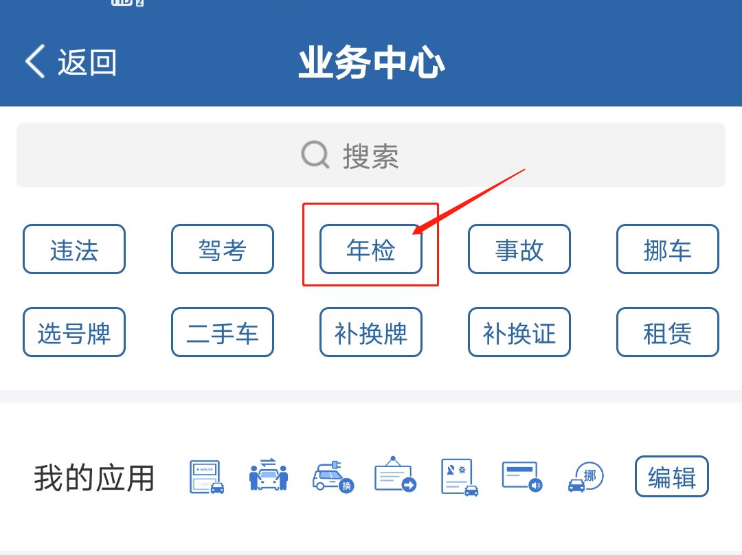 第二步:进入业务中心后,选择“年检”标签,点击“机动车检验预约”