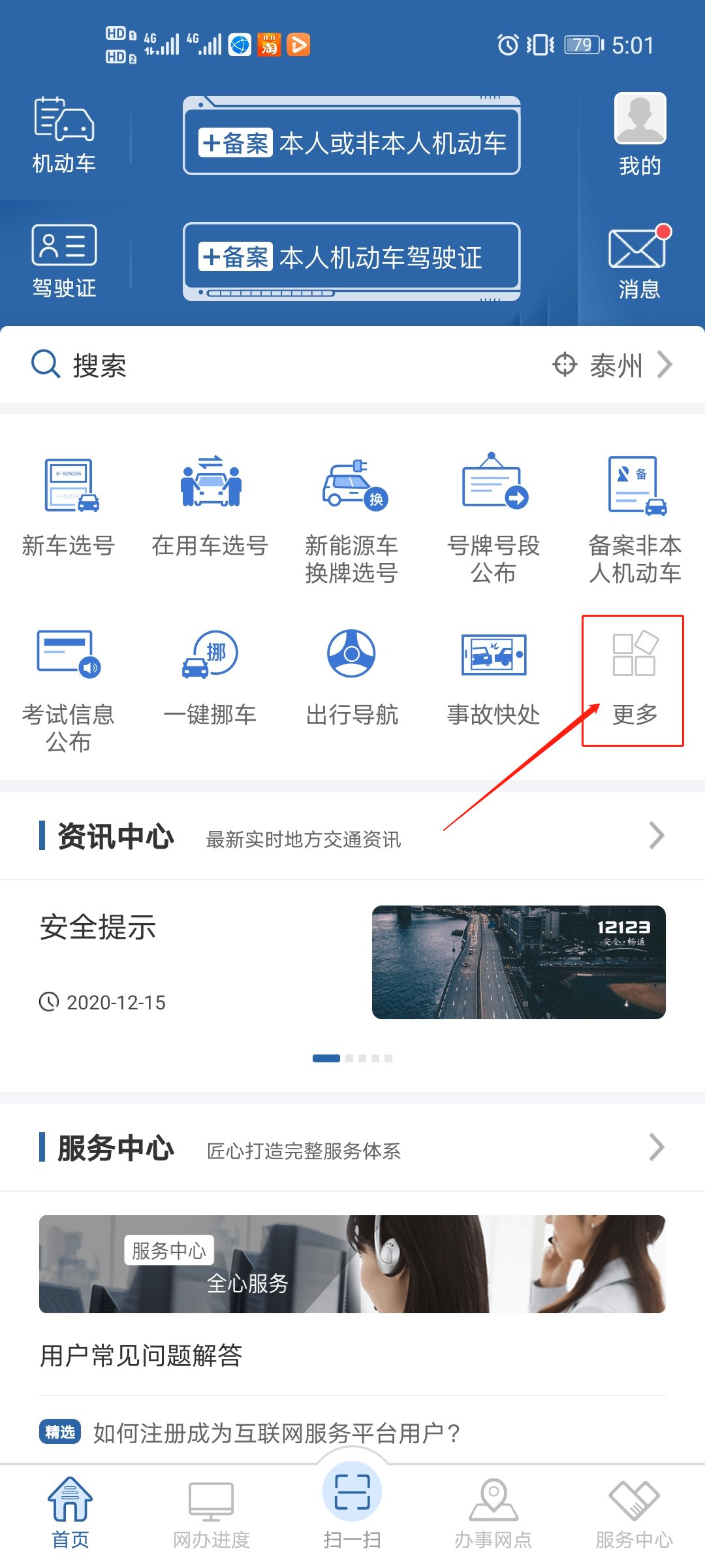 第一步:下载交管12123APP,实名认证注册登录后,点击“更多”功能按钮
