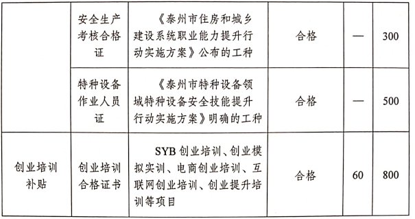 《泰州市区技能提升培训职业(工种、项目)和补贴标准目录》