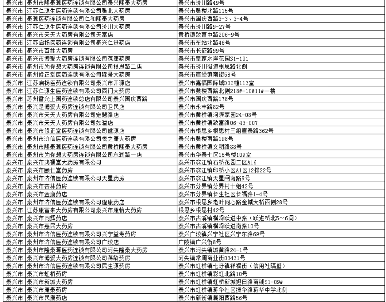 泰兴市可实现异地联网报销的定点药店具体名单如下:
